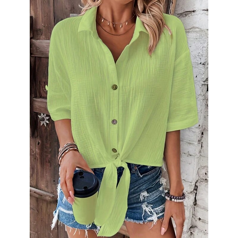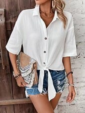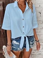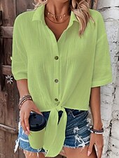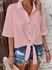 More information about Women's Shirt Button Down Blouse Solid Color Stylish Casual Half Sleeve Shirt Button Down Blouse Collar Regular Tops Daily Buttons White Pink Green Light Blue Summer