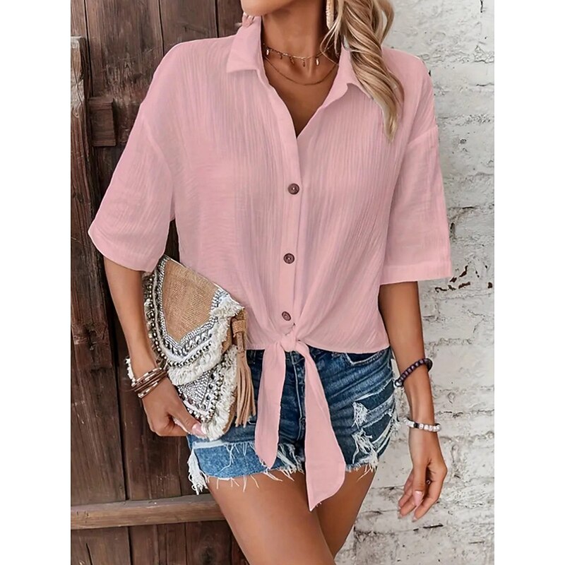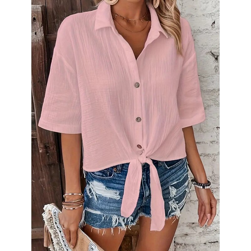 Women's Shirt Button Down Blouse Solid Color Stylish Casual Half Sleeve Shirt Button Down Blouse Collar Regular Tops Daily Buttons White Pink Green Light Blue Summer 10