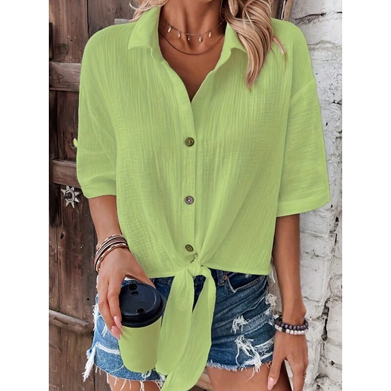 HOT ! Women's Shirt Button Down Blouse Solid Color Stylish Casual Half Sleeve Shirt Button Down Blouse Collar Regular Tops Daily Buttons White Pink Green Light Blue Summer