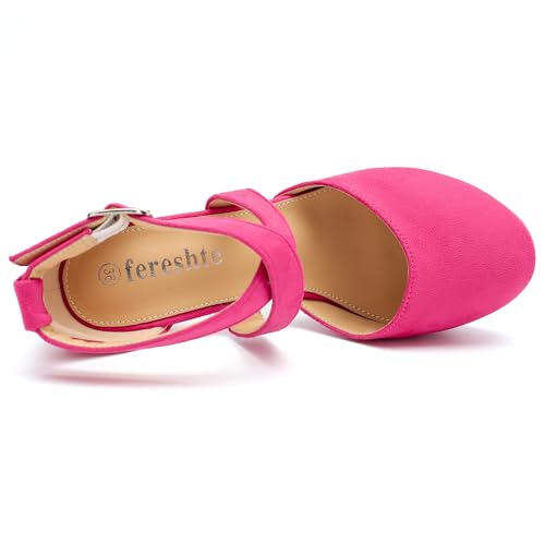 • Chunky Heel Measures Approx: 10cm/3.94", Platform Measure Approx: 2cm/0.78", These heels feature a closed round toe are more comfy for your feet, Adjustable crossed ankle strap buckle design give you enough sense of security, as well as a Nonslip and wearable rubber outsole for easy movement.