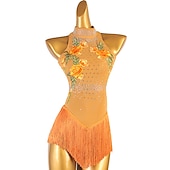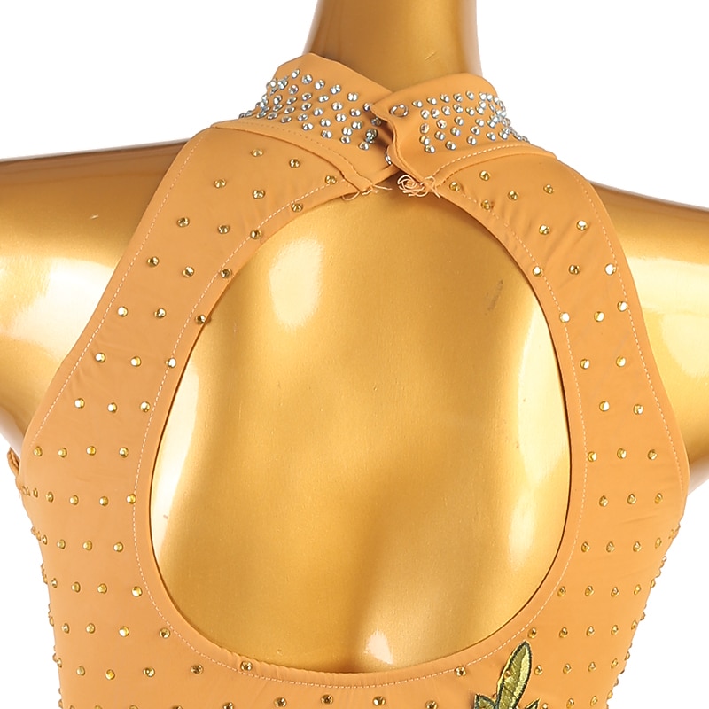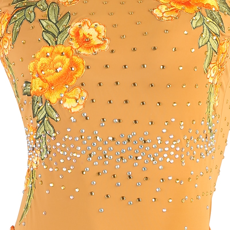 More information about Figure Skating Dress Women's Girls' Ice Skating Dress Orange Patchwork Open Back Mesh High Elasticity Training Competition Skating Wear Classic Sleeveless Ice Skating Figure Skating