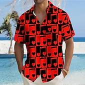 More information about Valentine's Day Men's Heart Musical Notes Shirt Button Up Shirt Short Sleeve Fashion Casual Vacation Gift Holiday Summer Fall Turndown 3D Print Red