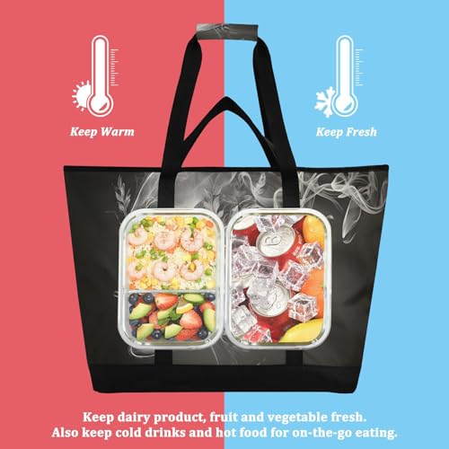 More information about Skull Abstract Black Large Insulated Reusable Tote Bag for Grocery Shopping for Women Men, Cooler Bag with Zippered Top & Handles for Travel Beach Picnic