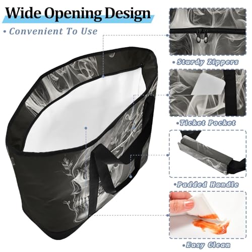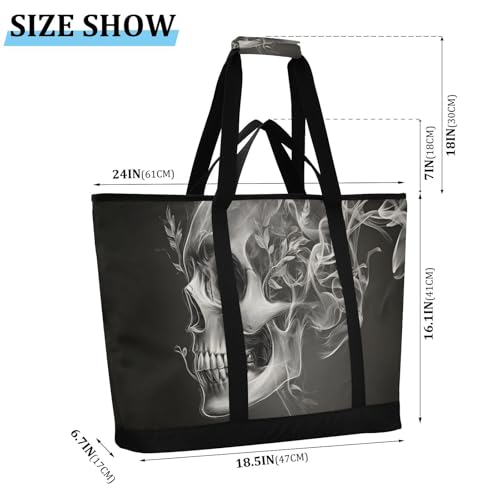 HOT ! Skull Abstract Black Large Insulated Reusable Tote Bag for Grocery Shopping for Women Men, Cooler Bag with Zippered Top & Handles for Travel Beach Picnic