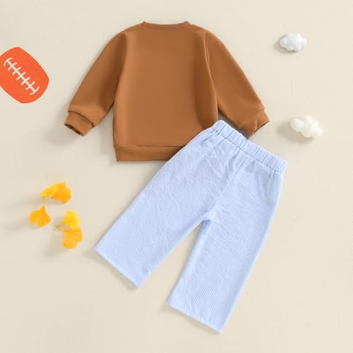 Toddler Baby Boy Clothes Fall Winter Outfit Football Embroidery Long Sleeve Sweatshirt & Plaid Pant Set 5