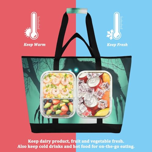 HOT ! Monster Forest Large Insulated Reusable Tote Bag for Grocery Shopping for Women Men, Cooler Bag with Zippered Top & Handles for Travel Beach Picnic
