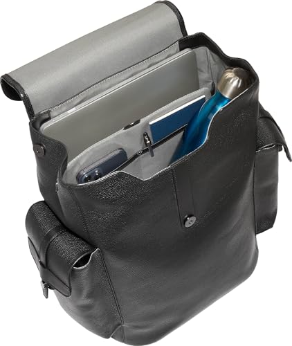 • Two exterior side pockets offer easy access to water bottles or snacks, while the interior features a padded suspended laptop/tech flex side pocket with a leather pull tab for secure device storage