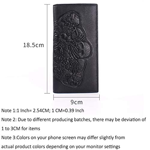More information about Mens Slim Genuine Leather Bifold Long Wallet Embossed Skull Checkbook Wallet for Women