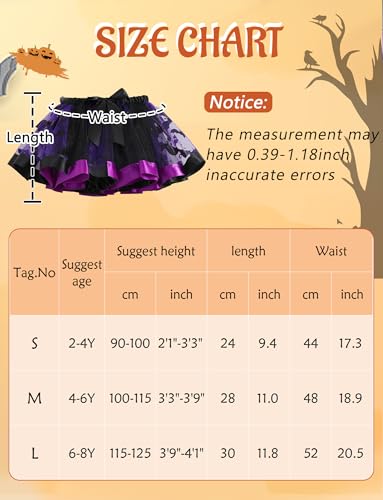 • Kid girl witch layered tulle mini tutu skirt set with hat & broomstick, comfortable, soft, light and breathable, anti-wrinkle.