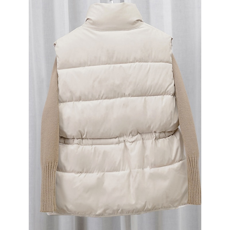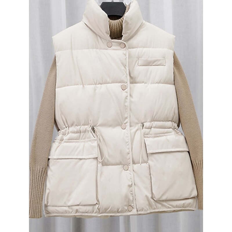 Women's Casual Jacket Comfortable Breathable Pocket Buttons Casual Plain Vacation Street Casual Daily Wear Single Breasted Short Stand Collar Regular Fit Sleeveless Outerwear Black Beige Coffee 9