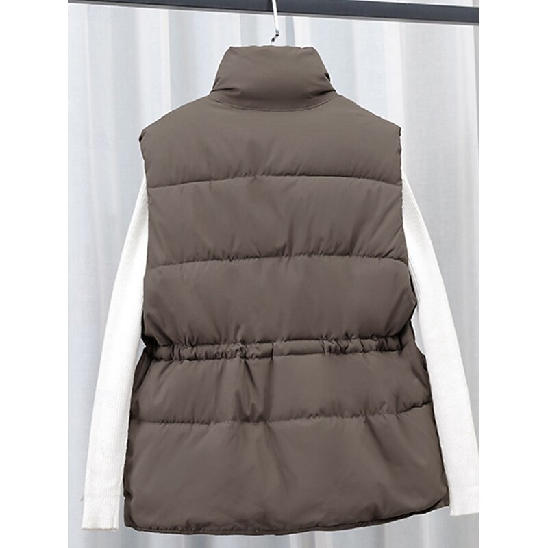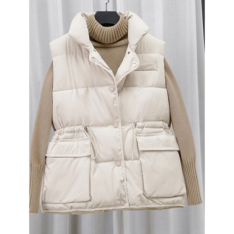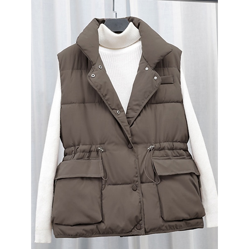 More information about Women's Casual Jacket Comfortable Breathable Pocket Buttons Casual Plain Vacation Street Casual Daily Wear Single Breasted Short Stand Collar Regular Fit Sleeveless Outerwear Black Beige Coffee