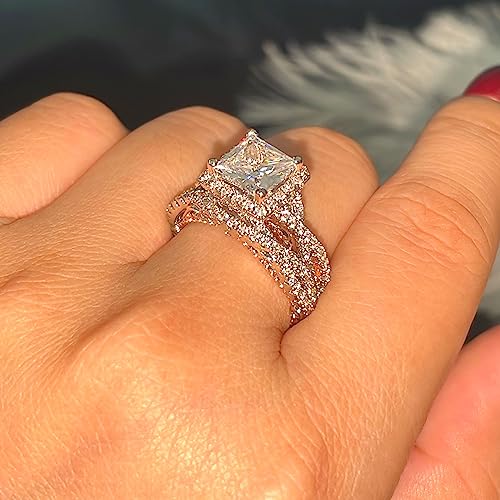 CEJUG 2.3Ct Halo Princess Cubic Zirconia Bridal Ring Set Engagement Wedding Rings for Women 18K Gold Plated Size 6-10 5