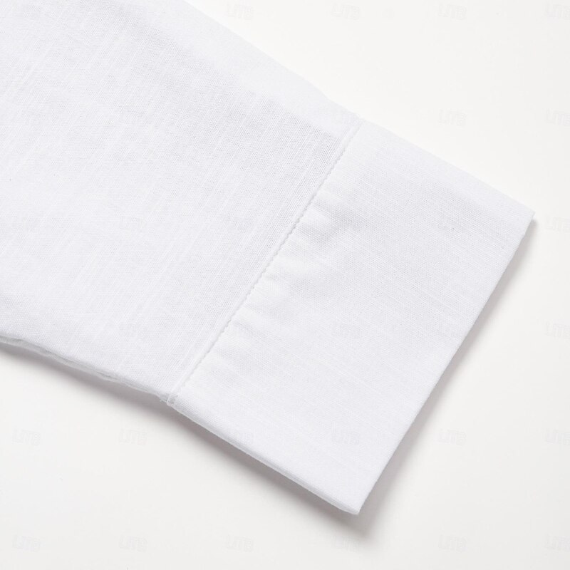 Men's Dress Shirt Button Up Shirt White Long Sleeve Solid Color Turndown Spring &  Fall Wedding Party Clothing Apparel Button 7