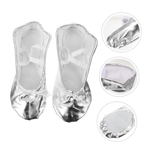 GLEAVI Dance Ballet Practice Shoes Ballerina Shoes Slippers Ballet Shoes Slippers Leather Gymnastics Shoes Ballet Dancing Shoes Girl Leather Ballet Shoes Child Yoga Shoes Silver 4