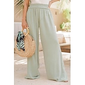 More information about Women's Normal Culottes Wide Leg Wide Leg Cotton Linen Pants Fashion Full Length Mid Waist Solid Color Elastic Waist Wide Leg Baggy Comfort Micro-elastic Casual Weekend Black White Light Green Orange