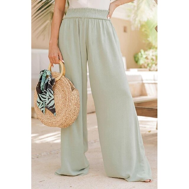 Women's Normal Culottes Wide Leg Wide Leg Cotton Linen Pants Fashion Full Length Mid Waist Solid Color Elastic Waist Wide Leg Baggy Comfort Micro-elastic Casual Weekend Black White Light Green Orange 8