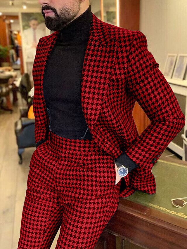 $113.99 - Men's Wedding Suits Peak Black+Red Fashion Business Plaid Tailored Fit 2 Piece Single Breasted One-button 2025. Shop for cheap Casual Suits online? Buy at lightinthebox.com on sale today!