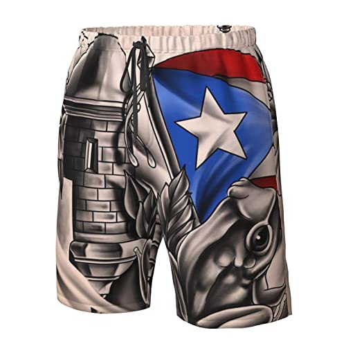 HOT ! Puerto Rico Rican Flag Frog Men's Quick Dry Swim Trunks Summer Beach Bathing Suits Drawstring Boardshorts for Mens