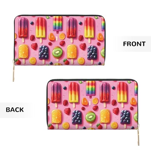 Leather Thin Slim Wallets for Women & Men - Fruit Ice Cream Print Card Wallet Holder with Zipper 1