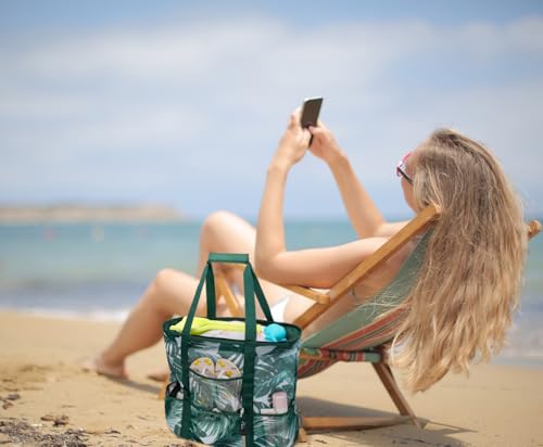 • Extra Large Storage Space: The 21.6"L x 15.7"H x 8.7"W mesh beach bag is big enough to carry 4-6 beach towels, sunscreen, snacks and scuba dive equipment, swimming gear, beach toys, water shoes, water bottles, sunblock, goggles and even has room left; Hold everything you need for a day on the beach / pool