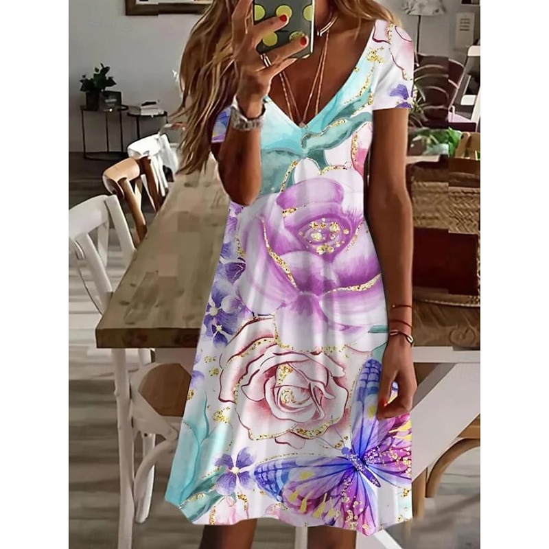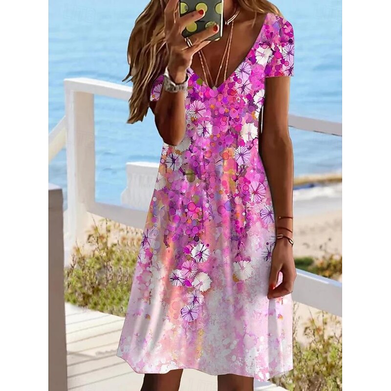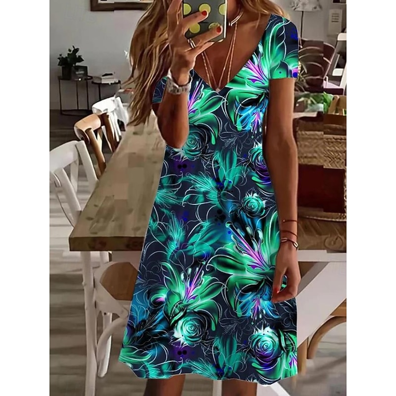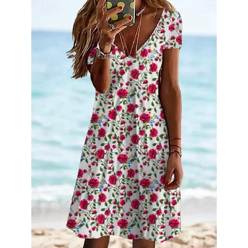 More information about Women's Mini Dress Casual Dress Elegant Tropical Hawaiian Daily Regular Fit Floral Short Sleeve Crew Neck White Pink Light Red Blue Summer