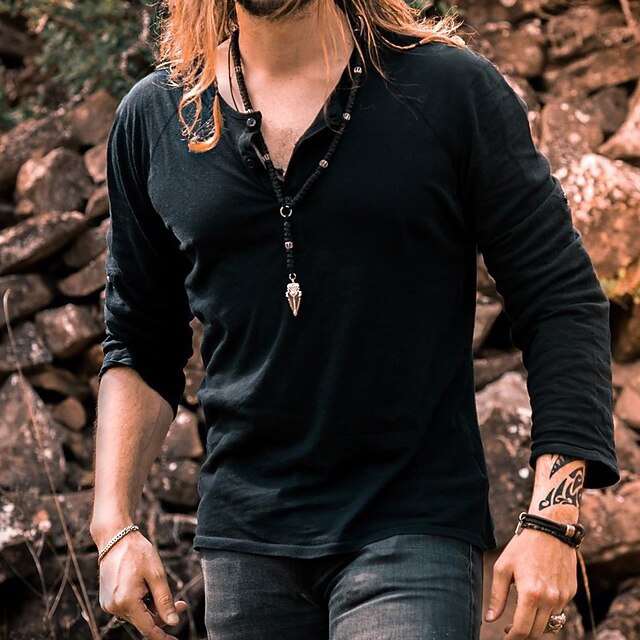 More information about Men's Henley Shirt Long Sleeve Shirt Plain Henley Street Holiday Long Sleeve Button-Down Clothing Apparel Simple Casual Comfortable