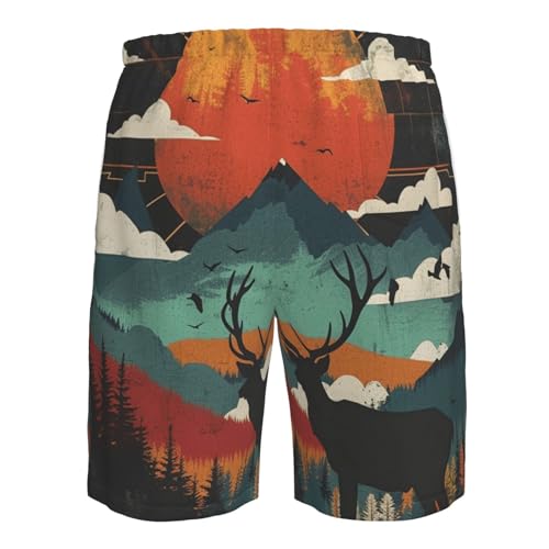HOT ! Men's Quick Dry Swim Shorts Deer Mountains Sunset Landscape Modern Art Geometric Beach Trunks with Pockets
