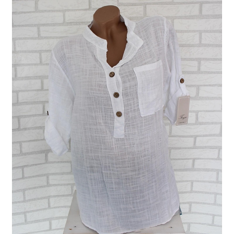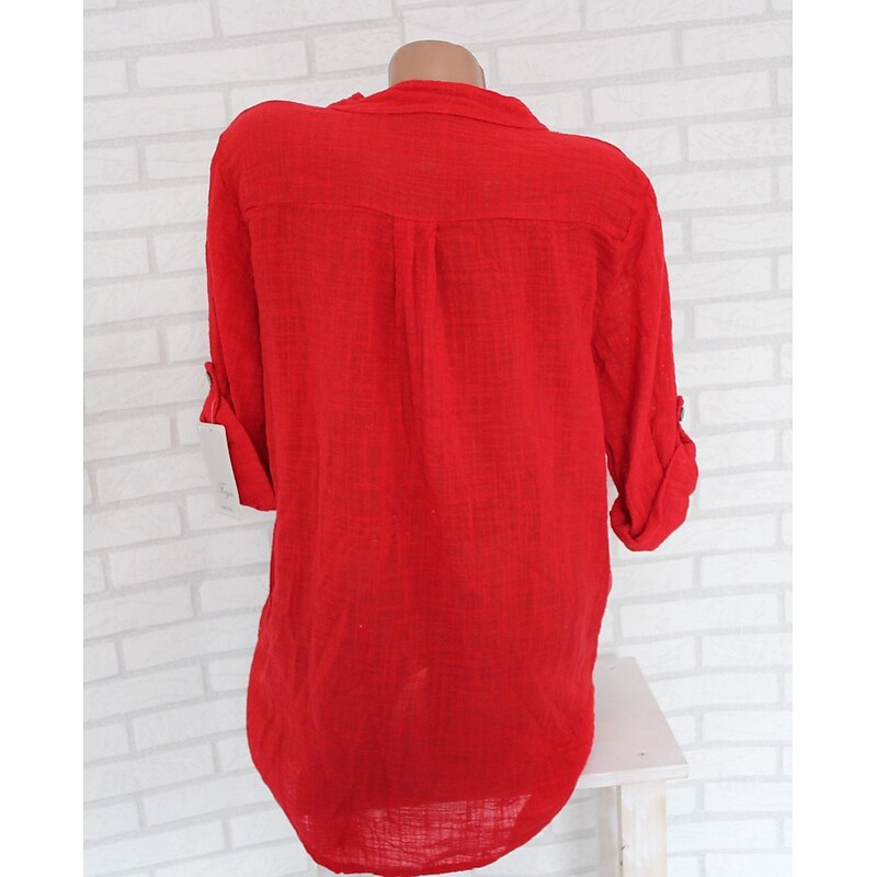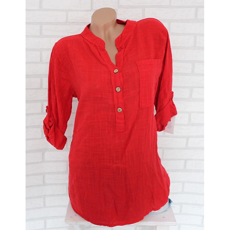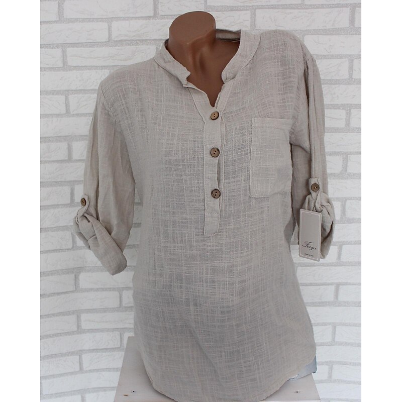 Highlights [Fabric & Fit] : This women's blouse is crafted from high-quality linen fabric, offering a standard thickness that is perfect for the summer season. Its regular fit ensures a comfortable and flattering silhouette, making it ideal for daily wear. [Design Highlights] : Featuring a contemporary V-neck, this blouse also boasts a button-up front with elegantly designed natural wooden buttons adding a rustic charm. The long sleeves can be rolled up and secured with a buttoned strap for added versatility, while a single patch pocket on the chest enhances both its functionality and casual appeal. [Occasions] : Perfect for street and daily wear, this blouse is suitable for a variety of settings, from casual outings to relaxed social gatherings. Its plain design and versatile colors make it easy to pair with different bottoms, whether youβre heading to a beach day or a simple day out. [Care Instructions] : To maintain the quality and appearance of the blouse, it is machine washable and suitable for both wet and dry care methods. [Size Range] : Available in a wide range of sizes from S to 5XL, this blouse is designed to cater to a variety of body types, ensuring a perfect fit for everyone. Available in traditional colors like Blue, White, Red, and Beige for versatile styling options.