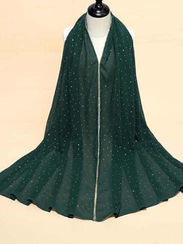 Geyoga Hijab Scarf for Women Soft Chiffon Rhinestone Long Scarf Shawl Fashion Muslim Hijab Head Wrap Scarves 7