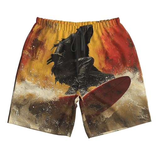 Men's Beach Shorts Board Casual Quick Dry Swim Trunks Holiday - Grim Reaper Surf Retro 6