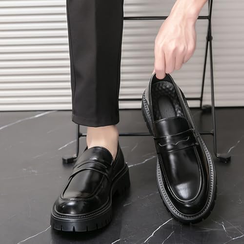 Men's Leather Platform Slip-On Penny Loafers Fashion Business Casual Dress Shoes Comfortable Non-Slip Thick Sole Chunk Heel Driving Loafers 6