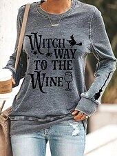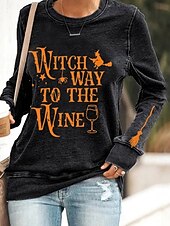 More information about Halloween Women's Pullover Sweatshirt Witch Graphic Letter Casual Long Sleeve Crew Neck Round Neck Regular Tops Street Casual Holiday Print Black Orange Gray Spring Fall Winter