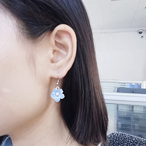 Tiny Myosotis Forget Me Not Flower Charm Dangle Earrings Wedding Gift 3 Tone (Purple Gold) 5