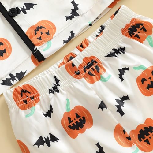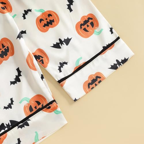 fyclemt Halloween Pajamas Baby Boy Girl Silk Pajamas Floral Pumpkin Ghost Long Sleeve Button Up Shirt Top Pants Pjs Sleepwear 7