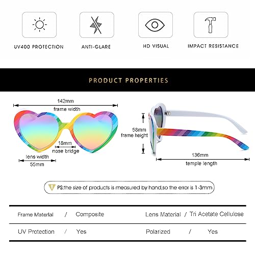 Gleyemor Polarized Rainbow Heart Sunglasses for Women Trendy Glasses Fashion Pride Accessories 1