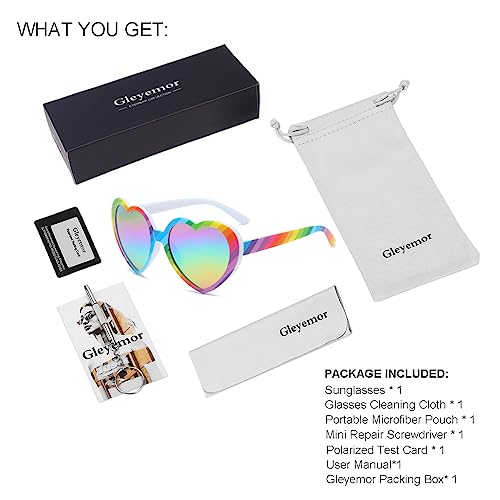 HOT ! Gleyemor Polarized Rainbow Heart Sunglasses for Women Trendy Glasses Fashion Pride Accessories
