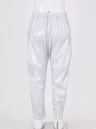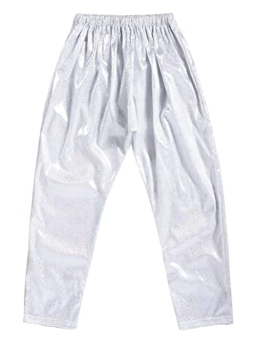 Girls Kids Sequin Metallic Elastic Waistband Trousers Little Boys Hip Hop Jazz Streetwear Dance Sports Trousers Silver 15-16 Years 6