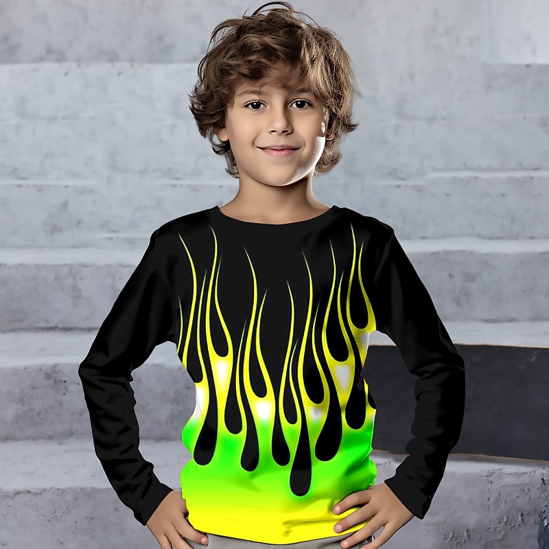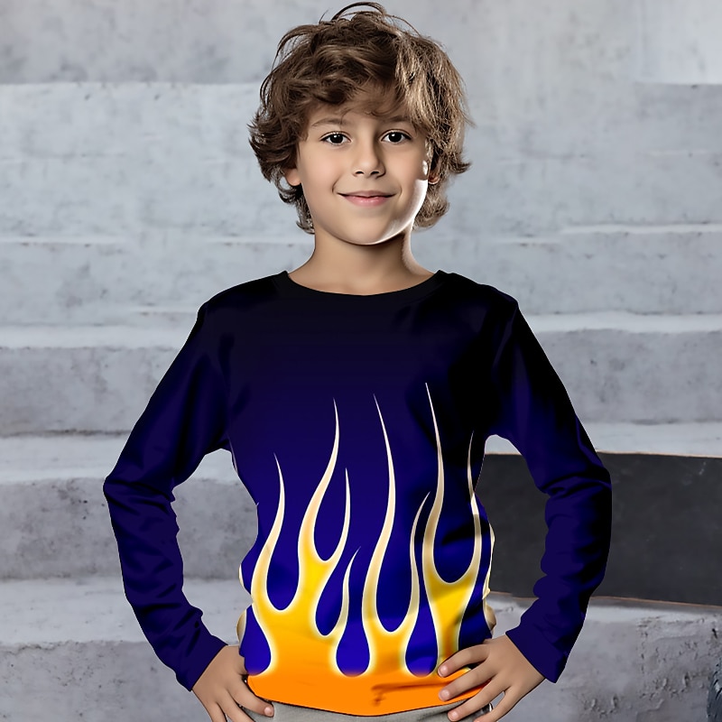 More information about Boys 3D Fire Tee Shirt Long Sleeve 3D Print Spring Fall Sports Fashion Streetwear Polyester Kids 3-12 Years Crew Neck Outdoor Casual Daily Regular Fit