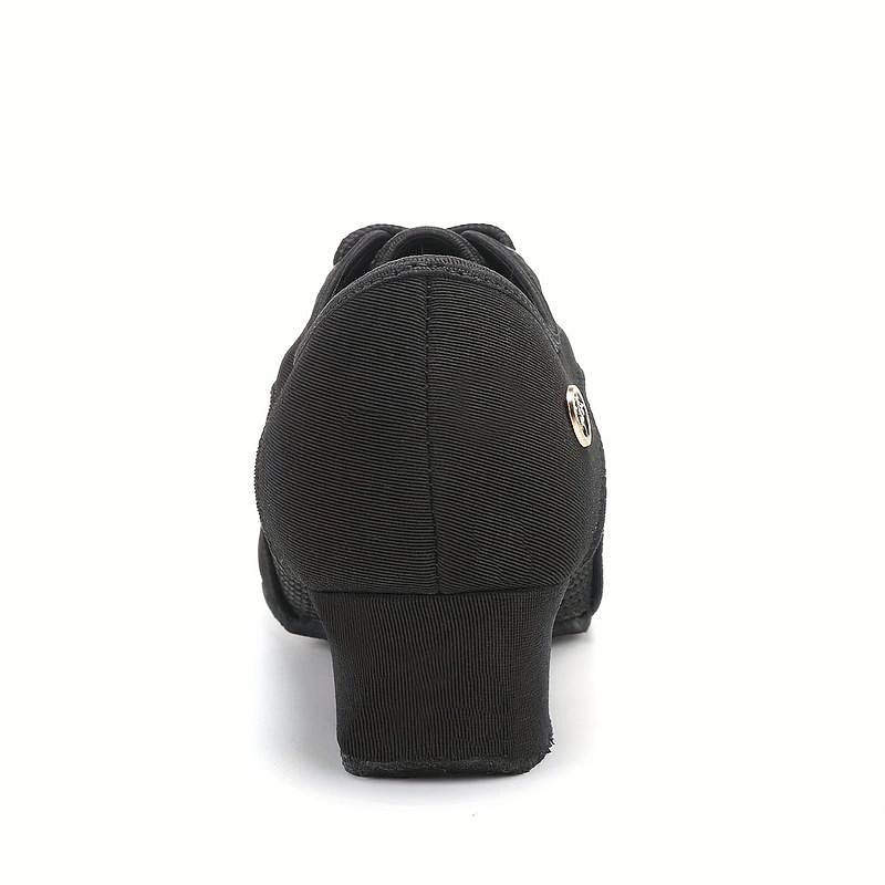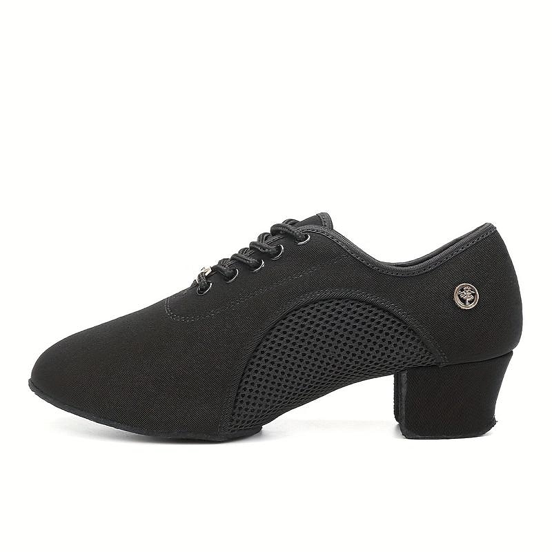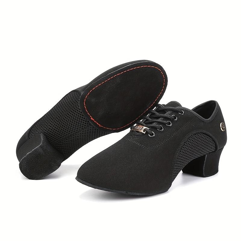 HOT ! Women's Black Breathable Latin Dance Shoes, Lace - Up Ballroom Dance Sneakers with Suede Sole for Comfortable Practice