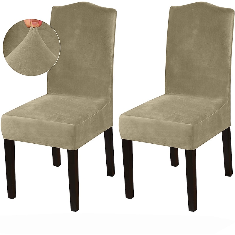 Dining Chair Cover Stretch Chair Seat Slipcover Velvet Soft Plain Solid Color Durable Washable Furniture Protector For Dining Room Party 2