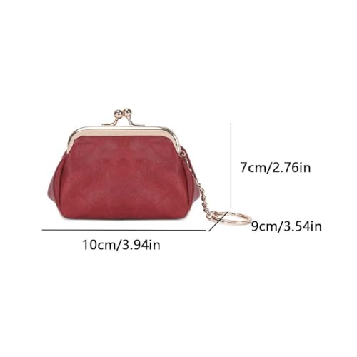 Women Retro Clip Purse PU Leather Clasp Wallet Lipstick Clutch Bag (Red) 5