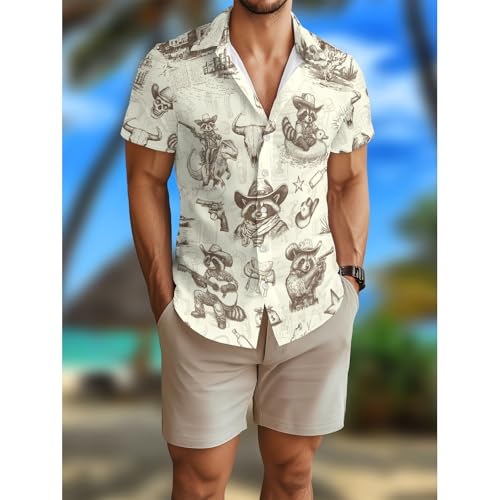 Men's Hawaiian Shirt Funny Vintage Western Cowboy Print Summer Beach Casual Short Sleeve Button Down Shirts 7