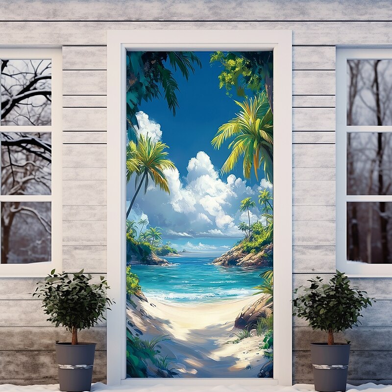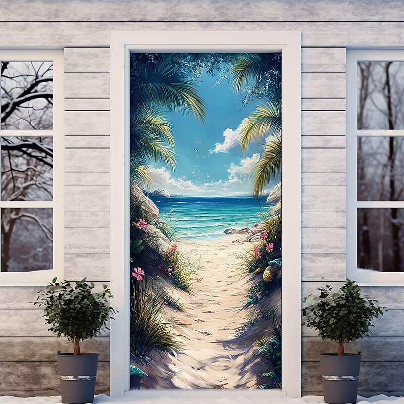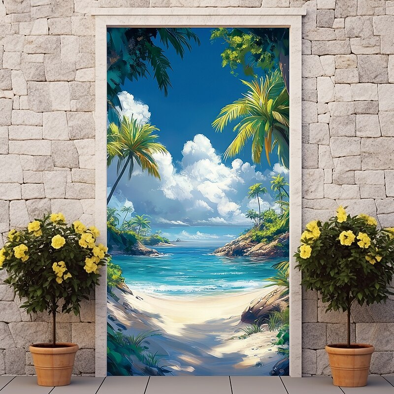 HOT ! Landscape Door Decorations Door Covers Ocean Beach Door Tapestry Door Curtain Decoration Backdrop Indoor/Outdoor Door Banner for Front Door Farmhouse