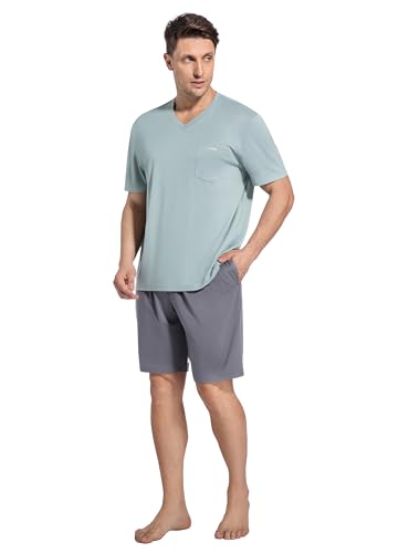 SlumberMee Mens Pajama Set Soft Cooling Viscose Summer Pjs Short Sleeve Sleepwear 2 Piece Set V Neck Loungewear with Pockets 6