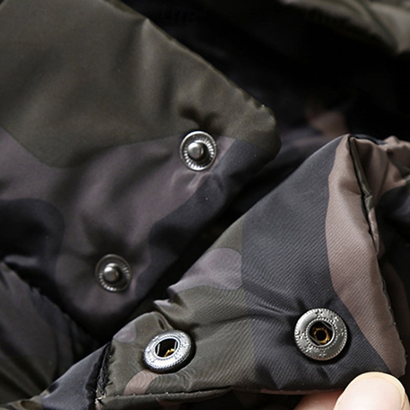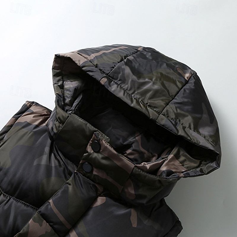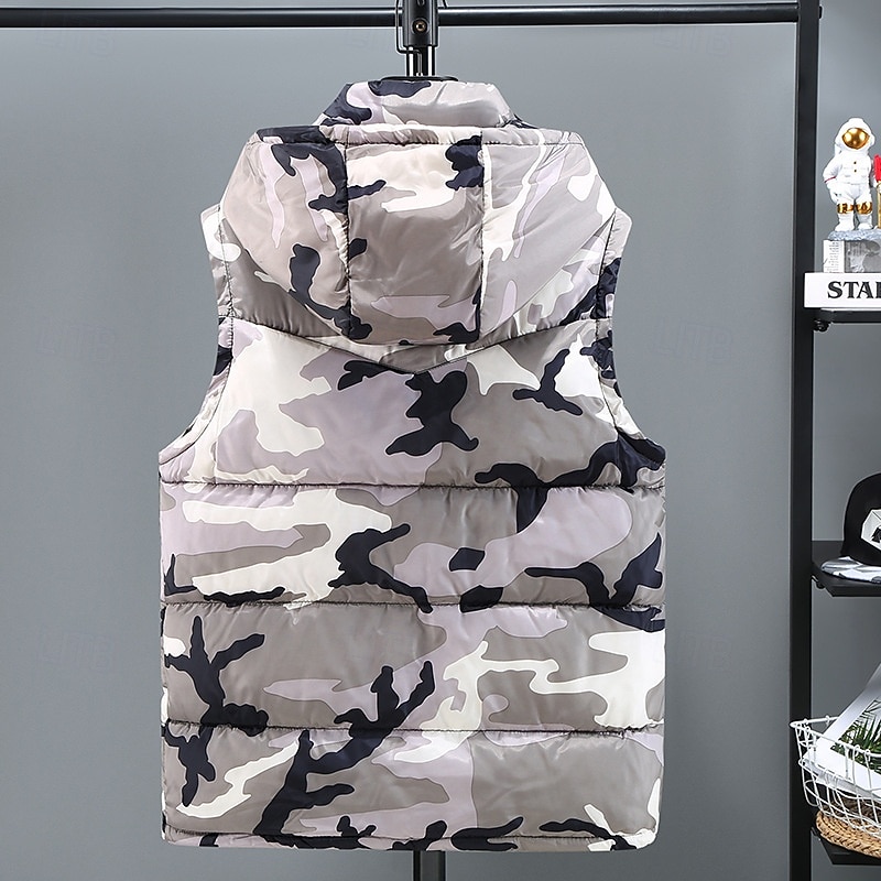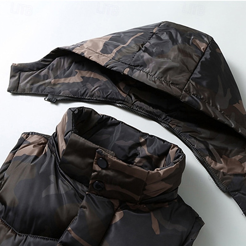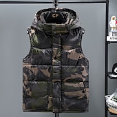 More information about Men's Puffer Vest Vest Gilet Vacation Daily Date Fashion Casual Winter Pocket Polyester Warm Comfortable Camouflage Zipper Hooded Regular Fit Black Green Light Grey Vest