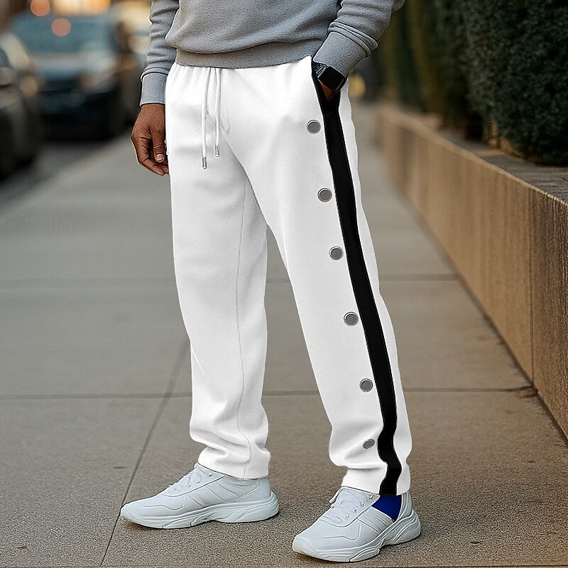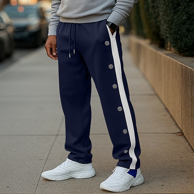More information about Men's Sweatpants Trousers Straight Leg Sweatpants Open Bottom Sweatpants Drawstring Side Stripe Elastic Waist Plain Comfort Breathable Full Length Outdoor Casual Daily Fashion Designer White Navy Blue