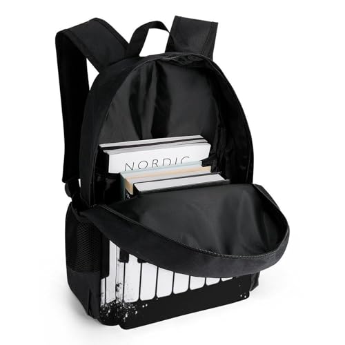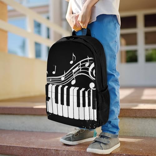 HOT ! Daypack Bookbag Multipurpose Anti-Theft Big Capacity Carry On Bag - Black And White Piano Keys With Musical Notes Travel Hiking & Camping Rucksack With Padded Straps