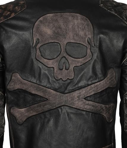 Hide & Seek Men’s Skull Embossed Diamond Quilted Skeleton Biker Distressed Vintage Motorcycle Leather Jacket 5