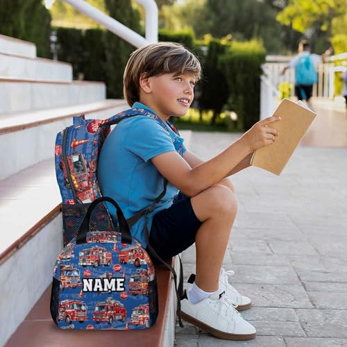School Backpacks for Boys, Personalized Set of 3 Fire Truck Backpack for Kids Children Teens, Large Capacity Bookbag with Lunchbox and Pencil Case Supplies for Kindergarten Elementary 1