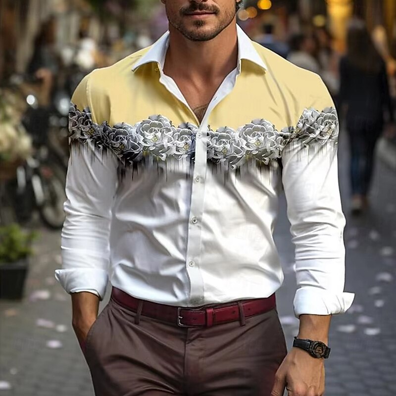More information about Men's Floral Print Flowers Shirt Button Down Shirt Hawaiian Shirt Long Sleeve Hawaiian Outdoor Vacation Holiday Summer Spring Turndown 3D Print Collared Shirts Yellow Pink Blue Purple
